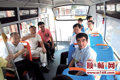 昨日的天氣十分悶熱,火紅的太陽(yáng)曬得讓人受不了。啟動(dòng)儀式結(jié)束后,記者隨有關(guān)領(lǐng)導(dǎo)試乘新的龍江公交車,登上車時(shí)給我的第一感覺(jué)是涼快!匆匆到汽車后面,坐上尾排的座位,等人員上齊后,龍江公交“快樂(lè)之旅”就馬上開始。