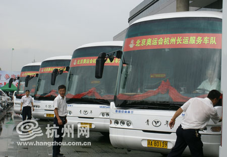 據(jù)了解,北京奧組委對服務(wù)用車的質(zhì)量、檔次、環(huán)保、舒適度等方面都有非常高的要求。為了確保服務(wù)奧運的車輛達到一流車況,杭州長運在接到服務(wù)北京奧運運輸任務(wù)后,從現(xiàn)有班線中抽調(diào)了符合條件的10輛最豪華、環(huán)保的大客車,同時,投入1400萬資金新購買了7輛大客車,組成了一個17輛車的服務(wù)車隊。