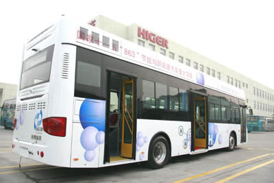 此款以氫氣為燃料的KLQ6129GQH2低地板城市客車,由蘇州金龍和清華大學(xué)聯(lián)合研制,是國家 ‘863計(jì)劃十一五攻關(guān)項(xiàng)目:節(jié)能與新能源汽車’——?dú)淙剂铣鞘锌蛙囇邪l(fā)項(xiàng)目。這也是海格客車?yán)^2006年初推出氫燃料城市客車后,推出的新一代升級(jí)產(chǎn)品。