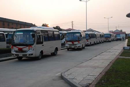 2009年11月30日,江淮客車一片喜氣洋洋,32輛江淮·星巴披紅掛彩整裝待發(fā),江淮·星巴又一次批量進(jìn)入安徽市場(chǎng)。