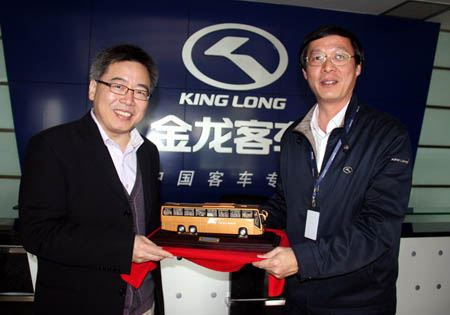 2月25日上午,國家發(fā)改委應(yīng)對氣候變化司司長蘇偉、廈門市發(fā)改委副主任黃曉舟、廈門市駐北京辦事處主任楊琪一行蒞臨大金龍公司參觀訪問,了解大金龍在新能源汽車技術(shù)研發(fā)及產(chǎn)業(yè)化方面的相關(guān)情況。大金龍常務(wù)副總經(jīng)理陳志強、技術(shù)總監(jiān)周方明接待了蘇偉司長一行。