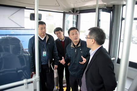 參觀中,蘇偉司長對大金龍從2001年起率先布局新能源汽車領(lǐng)域,并在核心技術(shù)研發(fā)和產(chǎn)品市場化方面取得的成績表示充分肯定。蘇偉司長指出,“低碳經(jīng)濟”正在逐漸成為世界發(fā)展的潮流,大金龍作為國內(nèi)客車生產(chǎn)企業(yè)的龍頭,不論從社會效益還是從經(jīng)濟效益的角度,都應(yīng)該發(fā)揮更大的作用。希望大金龍今后繼續(xù)加大科技研發(fā)力度,開發(fā)出適應(yīng)環(huán)保要求、適合市場需求的客車產(chǎn)品,為中國的節(jié)能減排工作貢獻自己的一份力量。