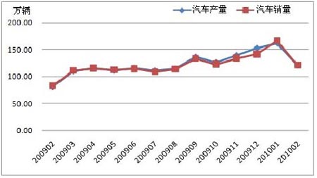 2009年2月-2010年2月汽車產銷走勢