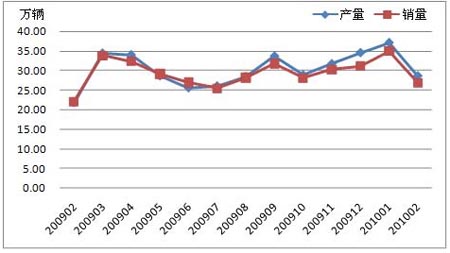 2009年2月-2010年2月商用車產銷走勢