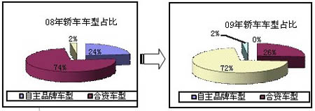 在合肥汽車乘用車市場(chǎng),轎車和商務(wù)車是主要市場(chǎng)主體,在08年到09年之間,增長(zhǎng)速度均達(dá)到50%以上。其中自主品牌的轎車和商務(wù)車增長(zhǎng)率也在70%以上,見下表: