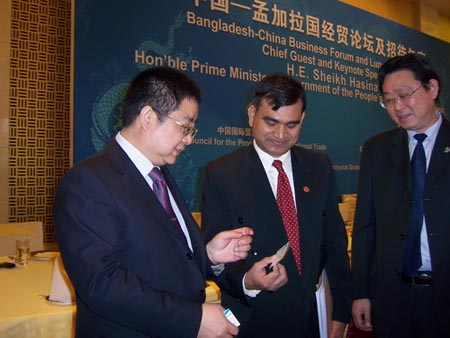 本次會議由中國貿(mào)促會和孟加拉駐華大使館共同舉辦,孟加拉國總理謝赫·哈西娜出席了論壇,并發(fā)表了主旨演講。中國國際貿(mào)易促進委員會副會長張偉,中國—孟加拉國友好協(xié)會會長何康,孟加拉國駐華大使孟什·法亞茲·艾哈邁德也出席了論壇并分別致詞。出席論壇的還有外交部部長助理胡正躍,隨同哈西娜訪華的孟加拉國政府代表團成員,以及中孟兩國企業(yè)界人士等共計200余人。來自機械、基礎(chǔ)設(shè)施、通信和農(nóng)業(yè)等領(lǐng)域的中孟兩國企業(yè)家就雙邊經(jīng)貿(mào)和投資合作進行了交流和洽談。