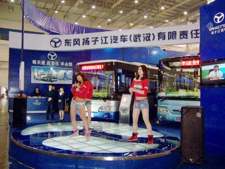 美麗的車模向參展嘉賓展示揚(yáng)子江客車的時(shí)尚與活力