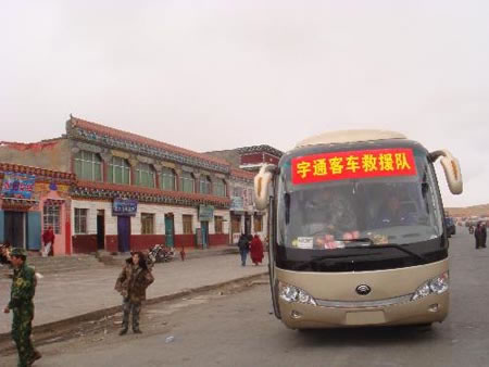 4月16日下午14:00,宇通救援隊(duì)六名工作人員帶領(lǐng)其中一臺(tái)車輛和從宇通客車蘭州服務(wù)站調(diào)撥的一批常用配件,從西寧出發(fā)趕赴玉樹(shù),并做好在去玉樹(shù)800多公里的路程中隨時(shí)救助故障車輛的準(zhǔn)備。