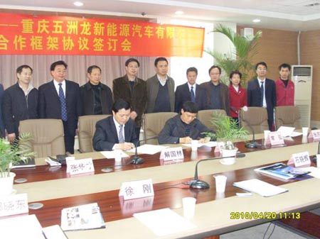 4月20日上午,重慶五洲龍新能源汽車(chē)有限公司與重慶理工大學(xué)產(chǎn)學(xué)研合作協(xié)議簽訂儀式在理工大學(xué)新校區(qū)舉行,會(huì)議由理工大學(xué)副校長(zhǎng)石曉輝主持,校長(zhǎng)朱新才與重慶五洲龍總經(jīng)理解國(guó)林簽訂了共同研發(fā)新能源客車(chē)項(xiàng)目的框架協(xié)議。