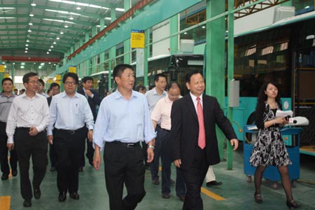 當日上午10時許,蔣書記、熊區(qū)長率區(qū)交通、科技、發(fā)改、財政等局(辦)主要領(lǐng)導(dǎo)一行10人專程來到五洲龍,重點調(diào)研公司新能源汽車產(chǎn)業(yè)情況。