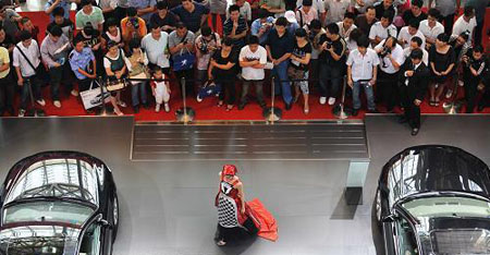 5月21日,一名模特在某汽車品牌展位上為觀眾表演。當(dāng)日,“2009湖南汽車展覽會(huì)”在湖南國(guó)際會(huì)展中心開幕。本次車展共有65個(gè)汽車行業(yè)品牌入駐參展,部分汽車廠商利用車展推出現(xiàn)場(chǎng)購車優(yōu)惠活動(dòng),吸引參觀者選購。