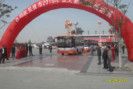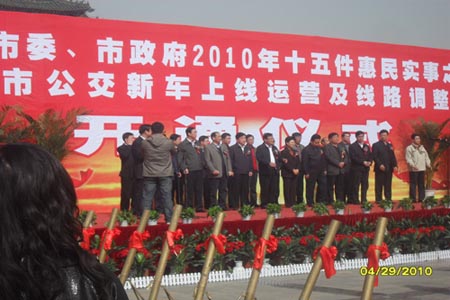 2010年4月29日,美麗的牡丹之城河南開封,城市公交新車上線運(yùn)營及線路開通儀式在開封金明廣場舉行,開封市市委、市政府、開封公交公司、市運(yùn)管處等單位出席了此次開通儀式,江淮客車作為此次公交車輛的供應(yīng)商之一,應(yīng)邀出席了開通儀式。