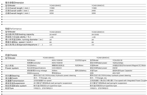 中大YCK6128HEC車型參數(shù)