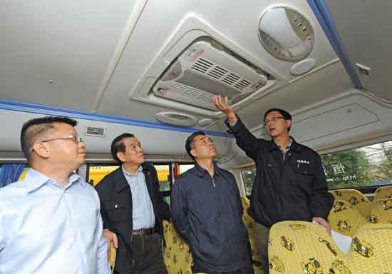 領(lǐng)導(dǎo)們詳細(xì)了解校車內(nèi)外各項(xiàng)安全設(shè)施