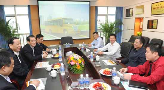 恒通客車相關(guān)領(lǐng)導(dǎo)向來賓們介紹企業(yè)基本情況及加強(qiáng)型安全校車