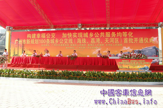 為構(gòu)建幸福公交、加快實(shí)現(xiàn)城鄉(xiāng)公關(guān)服務(wù)均等化的目標(biāo),廣州市新規(guī)劃100條城鄉(xiāng)公交線路(海珠區(qū)、荔灣區(qū)、天河區(qū))首批線路開通儀式舉行。