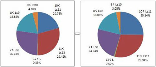 從各米段銷量的份額來看,遼寧大中型客車需求主要集中在7<L≤8米、8<L≤9米、10<L≤11米、和11<L≤12米范圍內(nèi),需求比例分別為24.24%、18.03%、25.14%和28.94%。