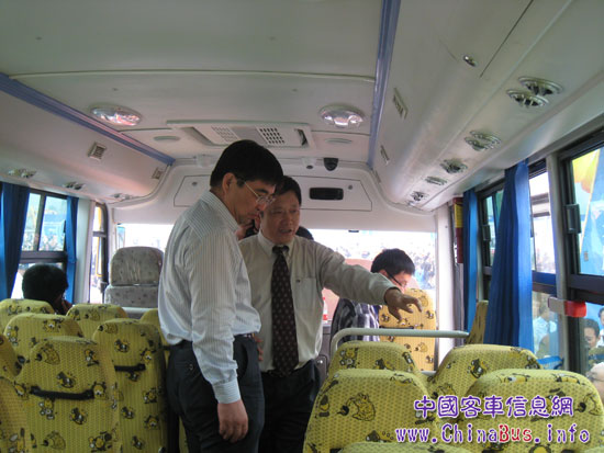 重慶市安監(jiān)局局長(zhǎng)肖健康陪同國(guó)家安全監(jiān)管總局規(guī)劃科技司副司長(zhǎng)施衛(wèi)祖參觀恒通加強(qiáng)型安全校車(chē)