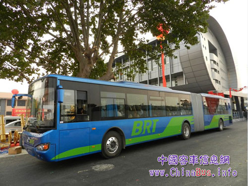 運(yùn)行在BRT一號線上的是蘇州金龍海格KLQ6181GQ大容量鉸接式公交客車,簡稱BRT客車,該批BRT搭載進(jìn)口康明斯燃?xì)獍l(fā)動機(jī),使用液化天然氣(LNG)作為燃料,并有進(jìn)口ZF自動變速箱、轉(zhuǎn)向機(jī)、車橋、空氣懸架等。其頂級的配置、典雅的外形、超大的容量、人性化的設(shè)計(jì)、舒適的車內(nèi)環(huán)境、良好的操控性、高標(biāo)準(zhǔn)的安全、節(jié)能、環(huán)保性能等堪稱國內(nèi) “城市公交動車”,據(jù)悉,這是目前江蘇省內(nèi)首批投入運(yùn)行的歐五排放燃?xì)釨RT客車。