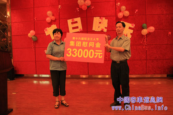 梁萍除了給環(huán)衛(wèi)工人帶來了玉柴集團(tuán)33000元的慰問金和公司工會10000元慰問金外,還帶來了一份特殊的禮物——玉柴集團(tuán)公司董事局主席晏平特意給每位環(huán)衛(wèi)工人和保安定制的一套高級服裝。今年,甘亞瓊、趙娟、陸書紅等15位環(huán)衛(wèi)工人一起獲得了“2012年度先進(jìn)環(huán)衛(wèi)工人”稱號。