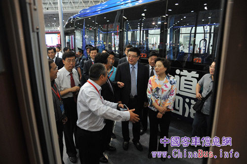 上午10時(shí),國家商務(wù)部部長助理仇鴻、湖北省政協(xié)副主席涂勇、湖北省商務(wù)廳廳長周先旺等領(lǐng)導(dǎo)參觀了揚(yáng)子江汽車展位,登上了揚(yáng)子江LNG清潔能源公交車及豪品房車,親切關(guān)懷揚(yáng)子江汽車新產(chǎn)品發(fā)展及公司發(fā)展?fàn)顩r,并給與揚(yáng)子江綜合實(shí)力以高度的贊賞。黃修瑞總經(jīng)理熱情的為各位領(lǐng)導(dǎo)講解了參展產(chǎn)品的性能,以及公司產(chǎn)業(yè)結(jié)構(gòu)調(diào)整的情況。