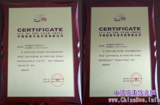 “2013中國輕客年度車型”評選結果出爐,東風御風獲兩項大獎