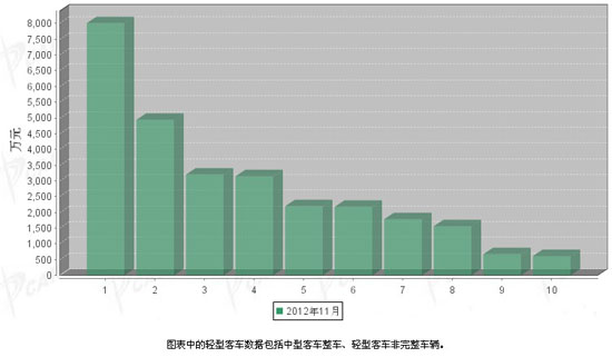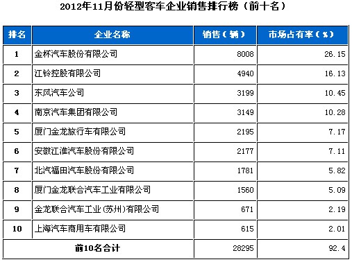 2012年11月輕型客車企業(yè)銷售排行前十