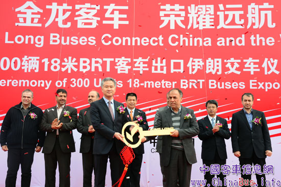 300輛大金龍18米BRT客車出口伊朗,不僅是國內(nèi)最大批次的BRT客車出口訂單,也是近年來廈門市工業(yè)產(chǎn)品出口金額最大的訂單,以廈門市副市長李棟梁為代表的當?shù)卣褪鄠主管部門領(lǐng)導出席交車儀式;伊朗方面也十分重視此次訂單交付,德黑蘭市副市長Hossein Mohammadpour Zarandi先生率領(lǐng)14人代表團親臨廈門,迎接300輛18米BRT客車回國。