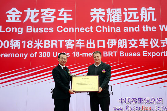 2012年12月19日,“金龍客車 榮耀遠航——300輛18米BRT客車出口伊朗交車儀式”在廈門現(xiàn)代碼頭隆重舉行。