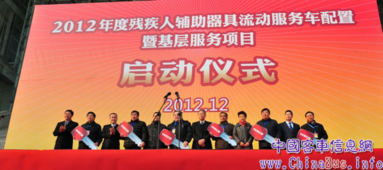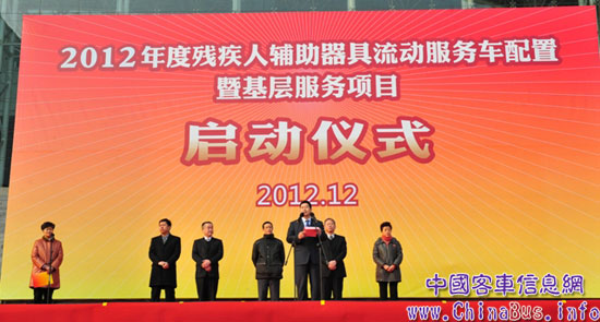 2012年12月25日下午, “2012年度殘疾人輔助器具流動服務(wù)車配置暨基層服務(wù)項目啟動儀式” (以下簡稱為“服務(wù)車項目”)在南京新莊國際展館南廣場舉行。南京依維柯汽車有限公司總經(jīng)理周亮先生在儀式上發(fā)表了熱情洋溢的講話。儀式上,南京依維柯共向中國殘聯(lián)交付了74輛殘疾人輔助器具流動服務(wù)車。