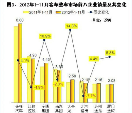2012年1-11月我國客車市場銷量分析