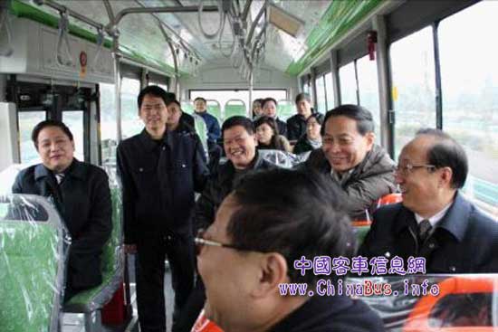 圖片說明:試乘首臺下線客車
