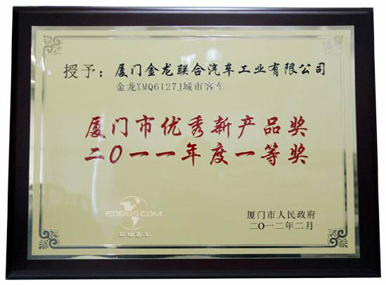 大金龍XMQ6127J城市客車獲2011年度廈門市優(yōu)秀新產(chǎn)品一等獎(jiǎng)