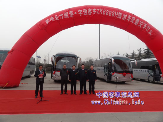 3月15日,宇通15輛ZK6888H旅游客車交付敦煌北方旅游汽車有限公司的儀式在河南鄭州宇通工業(yè)園舉行。宇通客車及敦煌北方旅汽的相關高層領導出席儀式現(xiàn)場,共同見證了這一時刻。由此,宇通與敦煌最大的汽車旅游公司成功牽手,也標志著宇通旅游客車開始批量駛入世界聞名的歷史文化圣地——敦煌景區(qū)。
