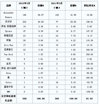 2012年3月英國客車銷量統(tǒng)計(jì)(分品牌)