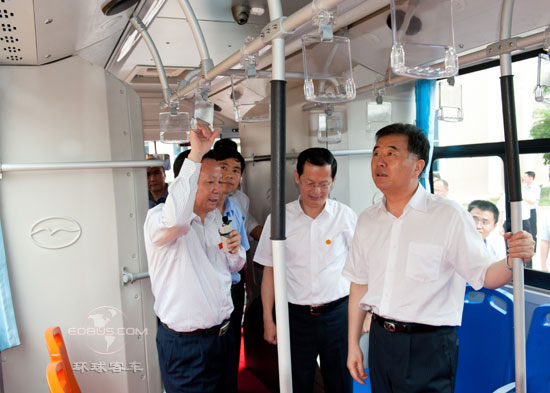 隨后,汪洋書記登上了一輛五洲龍新款的純電動大巴,詳細了解了車輛的性能特點、運行效果,并重點查看了車輛的動力電池。他強調(diào),新能源汽車最關(guān)鍵的核心部件就是動力電池。張景新董事長介紹說,該車所采用的最新技術(shù)代表了國內(nèi)領(lǐng)先水平,該車已批量投放在青島公交。青島是我國著名的海濱國際旅游城市,對環(huán)境保護的要求標準相當高,青島市有關(guān)部門訪遍與對比了國內(nèi)所有生產(chǎn)廠家與車型,經(jīng)過實地嚴格論證,最終選定五洲龍純電動大巴作為城市綠色公交投入示范運行,F(xiàn)場展示的純電動車型均采用廣東五洲龍電源科技公司研發(fā)的錳鈦合金動力電池,這些車都是從五洲龍集團深圳總部直接開到揭西的,全程約300公里,中途沒有充電,到達時車輛還剩余將近一半的電量,續(xù)駛里程遠遠高于目前市場上的其他新能源車型!這樣的優(yōu)異表現(xiàn)令在場的人無比驚訝并由衷的贊嘆與佩服,現(xiàn)場爆發(fā)出熱烈的掌聲。