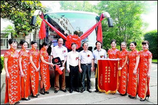 10日上午,東風(fēng)汽車公司向省老年人大學(xué)捐贈(zèng)了一輛市值45萬元的校車(見下圖),支持湖北老年教育事業(yè)發(fā)展!靶萝嚲褪呛!間距寬,坐椅舒適。”捐贈(zèng)儀式剛結(jié)束,省老年人大學(xué)學(xué)員們迫不及待地坐上了校車,搶鮮體驗(yàn)了一把!皷|風(fēng)汽車公司誕生在湖北,發(fā)展在湖北,壯大在湖北,應(yīng)該履行社會(huì)責(zé)任,奉獻(xiàn)社會(huì)!苯衲昴瓿,東風(fēng)公司在得知省老年人大學(xué)學(xué)員日益增多,老人們出行不便的信息后,積極組織旗下客車制造企業(yè),免費(fèi)為學(xué)校量身定制了一輛專用校車。