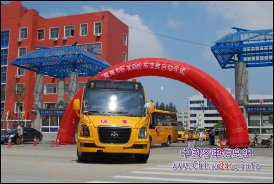 記者在儀式上看到,100輛黃海長頭專用校車顯得特別搶眼,據(jù)介紹:黃海專用校車在外觀上采用長頭式設計,具有正面碰撞吸收動能的作用;車架采用貫通式大梁和封閉環(huán)結(jié)構(gòu),可使車輛發(fā)生意外時最大限度地保證車內(nèi)生存空間不被侵犯;3600全方位無盲區(qū)視角,保證司機觀察到車輛周圍所有情況;電動停車示意臂用以警示前后方車輛及時避讓。車內(nèi)空間寬敞,座位間距大,緊急逃生安全門布置在車內(nèi)后側(cè);車內(nèi)無尖銳突出物、內(nèi)飾既環(huán)保又防火阻燃,每處細節(jié)都體現(xiàn)出對學生的安全呵護;與校車管理中心聯(lián)網(wǎng)的車內(nèi)監(jiān)控系統(tǒng)、上下車刷卡器、行車記錄儀等,時時保障校車的運行安全。尤其值得一提的是,黃海專用校車針對北方地區(qū)進行了一系列的優(yōu)化設計:如加大的除霜口、大功率暖風、電加熱式角窗、防融雪劑侵蝕的底盤裝甲等。同時根據(jù)農(nóng)村地區(qū)道路的特殊情況,采用了少片鋼板彈簧的懸架結(jié)構(gòu),不僅提升了底盤高度,使得車輛的通過性得以加強,還極大提升了乘車的舒適度。