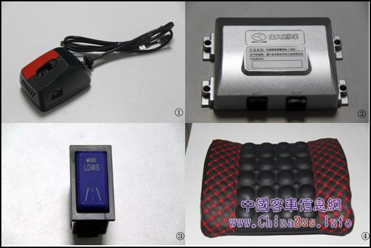 大金龍車道偏離報(bào)警系統(tǒng)主要功能部件包括:智能攝像頭、LDWS控制器、LDWS翹板開(kāi)關(guān)。通過(guò)選裝振動(dòng)靠墊,可實(shí)現(xiàn)車道偏離報(bào)警的聲音、振動(dòng)等多種提醒方式。為使系統(tǒng)正常工作,車輛必須安裝龍翼系統(tǒng)(KL-988金龍車載電腦信息系統(tǒng)),主要目的在于通過(guò)龍翼系統(tǒng)接收車輛運(yùn)行參數(shù)(車速、轉(zhuǎn)向、剎車信號(hào)等),有效降低系統(tǒng)的誤報(bào)率。