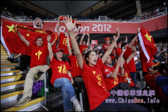 白浪與福田汽車倫敦奧運(yùn)中國女排助威團(tuán)一起現(xiàn)場為中國女排加油助威