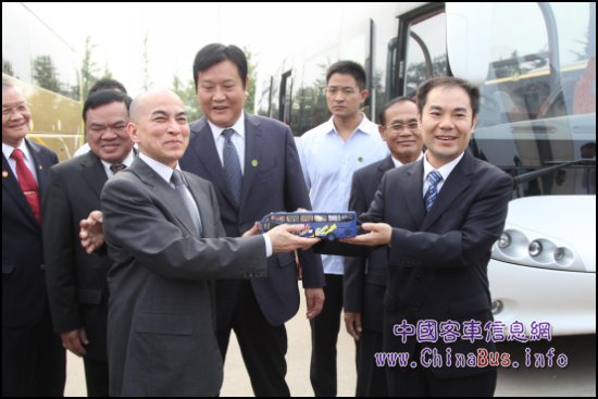 參觀結(jié)束后,總經(jīng)理牛波代表宇通公司向西哈莫尼贈(zèng)送了一輛藍(lán)色的宇通ZK6127車模留念,西哈莫尼接過(guò)車模之后,一直愛不釋手地仔細(xì)端詳。為了表達(dá)謝意,西哈莫尼向宇通公司回贈(zèng)了一套吳哥窟紀(jì)念品。他說(shuō),“此次宇通之行令我很難忘,希望兩國(guó)人民能夠友誼長(zhǎng)存,經(jīng)濟(jì)合作不斷深入!