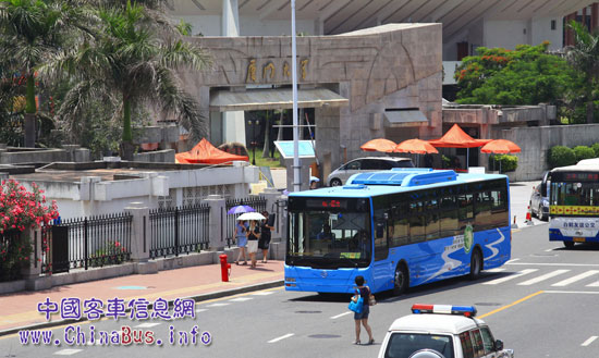 運(yùn)行在廈門(mén)大學(xué)主干線(xiàn)上的金旅混合動(dòng)力公交