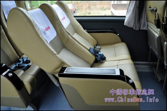從乘坐空間來看,本次試乘的KLQ6142BAE4L擁有39+1+1的座位。乘客區(qū)每排三個(gè)座位,分別是左側(cè)兩個(gè),右側(cè)一個(gè)。全真皮的高背座椅,乘客休息的時(shí)候,頭部完全可以放置在座椅上,下面還有放腿腳的踏板支撐。KLQ6142BAE4L的座位寬度可以和飛機(jī)頭等艙媲美,前排座椅后背上有專門放置茶杯的裝置,便于長途旅行。記者注意到,當(dāng)前排乘客把座椅調(diào)整到140度角的時(shí)候,身高162厘米的記者依然可以出入,但是如果是體重更大的男士,則需要前排乘客調(diào)整下座椅。