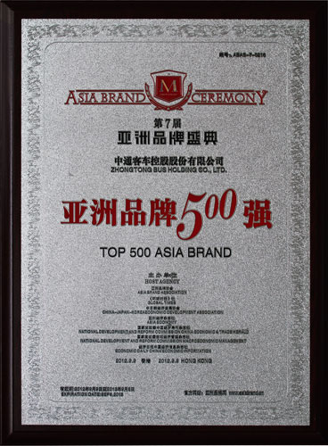 中通亞洲品牌500強(qiáng)獎(jiǎng)牌