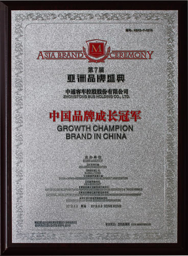 實(shí)力鑄就品牌——中通客車(chē)以高成長(zhǎng)性躋身“亞洲品牌500強(qiáng)” 和“中國(guó)品牌成長(zhǎng)冠軍”