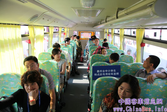 來自煙臺教育局的領(lǐng)導(dǎo)來到海格展位后,看到一輛展車車身有“青島溫馨校車”的字樣,便饒有興趣的登車參觀。蘇州金龍工程師向他介紹,從一些細微之處可以看到海格對于校車產(chǎn)品的專注。海格智慧安全校車乘客區(qū)全部采用平地板設(shè)計,這樣可以有效防止孩子在上下車時磕碰、摔倒、崴腳。帶有兩點式安全帶的專用校車安全座椅配合經(jīng)軟化處理的座椅扶手,在安全的同時還考慮到了舒適,充分的照顧到了兒童乘客多動的特殊性,讓他們能在車內(nèi)時更加的安靜。