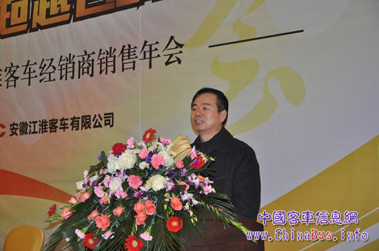 公司總會計師葉家彬首先代表江淮客車向各位經(jīng)銷商在過去一年里艱苦卓越的辛勤付出表示深深的感謝,2012年是江淮客車公司較為困難的一年,全年銷售各類客車5810輛,同比下降11.8%;實現(xiàn)銷售收入11.1億元,同比下降17.78%。在國內(nèi)銷售規(guī)模中,經(jīng)銷商實現(xiàn)銷售1662輛,同比下降3.77%;實現(xiàn)銷售額3.1億元,同比下降8.8%,經(jīng)銷商規(guī)模占國內(nèi)銷售的1/3,為江淮客車公司的發(fā)展做出了巨大貢獻(xiàn)。