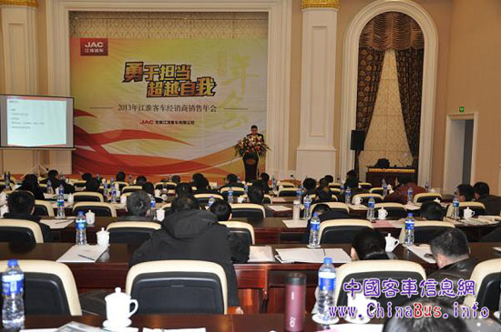元月5日上午,安徽江淮客車有限公司以“勇于擔(dān)當(dāng)、超越自我”的主題活動在碧桂園鳳凰大酒店隆重召開,江汽客車板塊黨委書記李永祥、江淮客車公司副總經(jīng)理許樹生、總會計師葉家彬,總經(jīng)理助理章曉明,以及銷售總公司主要領(lǐng)導(dǎo),與來自全國各地的50多家經(jīng)銷商齊聚巢湖沿畔,共同總結(jié)過去并對2013年工作重點宣貫和部署。