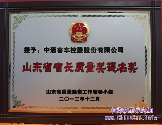 中通客車榮獲“2012年度省長(zhǎng)質(zhì)量獎(jiǎng)提名獎(jiǎng)”