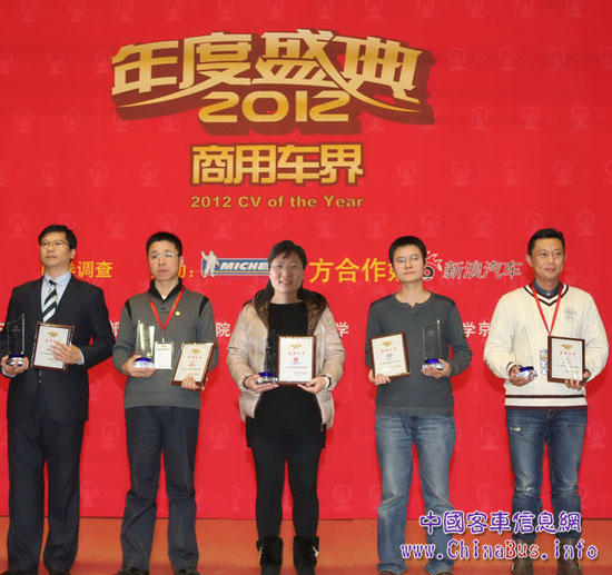 2012商用車界年度盛典申龍代表(右一)上臺(tái)獲獎(jiǎng)